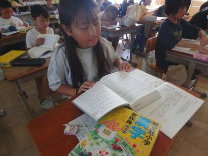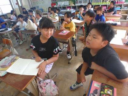 授業の後半では、教科書の問題にもチャレンジし、言葉の意味について友達と話し合いました。