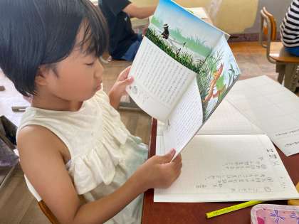 新しい学習がスタートしました。この日は初めて「ごんぎつね」のお話を読み、登場人物やあらすじを確かめました。
