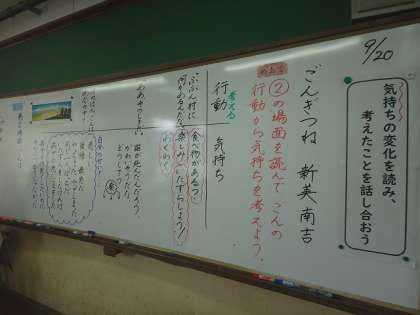 第2場面を読みました。ごんが考えたことや行動から、ごんの気持ちを考えました。