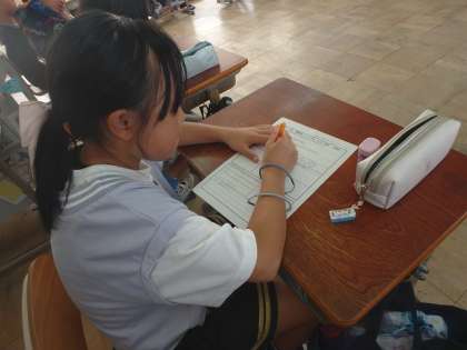 普段の学習や頑張っていることをふり返りながら、どのような内容を…どのような方法で伝えるのかを話し合いました。