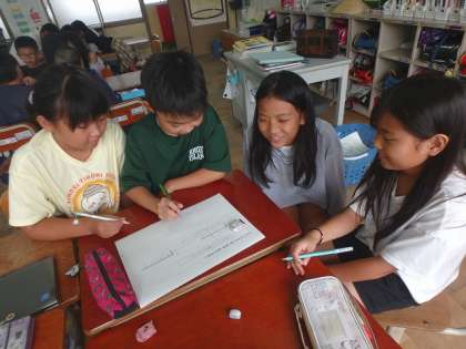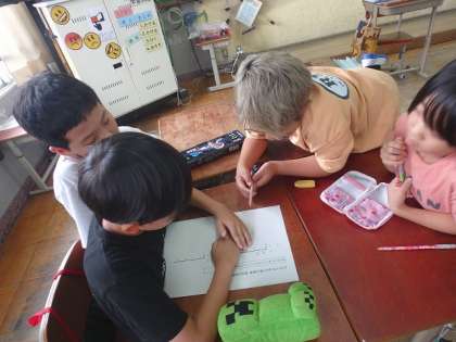 この学習、最後の時間には「4けた÷2けた」「4けた÷3けた」の問題に挑戦しました。グループで習ったことを思い出しながら、問題に取り組みました。