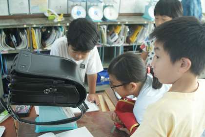 算数では重さの学習をしています。この時間はランドセルの重さをはかりで量りました。1000g以上の重さはkgとgを使って表すことができることを学びました。