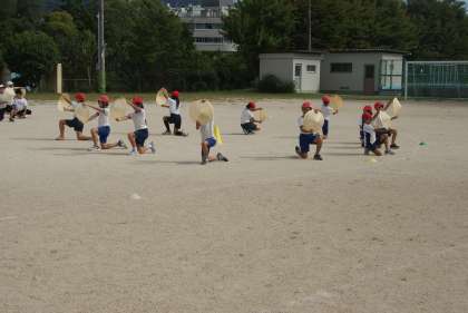 外で練習を始めました。隊形移動をしながら、外でも一生懸命踊ります。