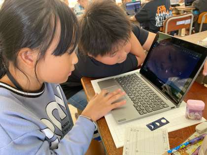 星や月の動きが分かるウェブサイトを使って、月がどのように動いているのかを調べました。気付いたことを進んで友達と話し合うことができていました。