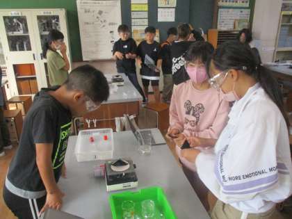 このことから、食塩水と石灰水は固体が溶けたもの、それ以外のものは気体か液体が溶けているのではないかという考えができました。