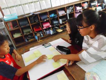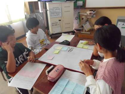 よりよい学校生活のためにできそうな取り組みを班ごとに考えています。この時間は、意見を出し合ったあとに、共通点や異なる点などに分け、どんな取り組みができそうか話し合いをしました。