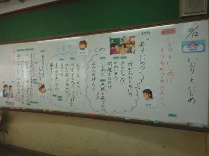 「いじりといじめはどのように違うのか」を話し合いました。「やられた人の気持ちを考えるのが大切」「相手や状況にもよるよな…」と、自分たちの生活もふり返りながら話し合っていました。