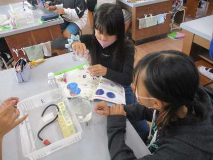 炭酸水に溶けているものが何なのかを調べるための実験をしました。