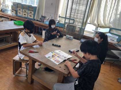 針金の形をいろいろ変えたり,組み合わせたりして立ち上げる作品を制作しています!