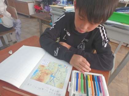 琵琶湖の水はどのようにやってくるのかを地図に色付けをして確かめ、気付いたことを話し合いました。たくさんの疑問が出てきておもしろかったです。