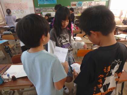式を見て、友達の考えを図に表し、交流しました。考えたことを話し合うことで、計算の順序や意味をしっかりと理解することができたようです。