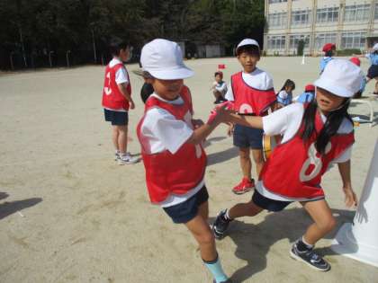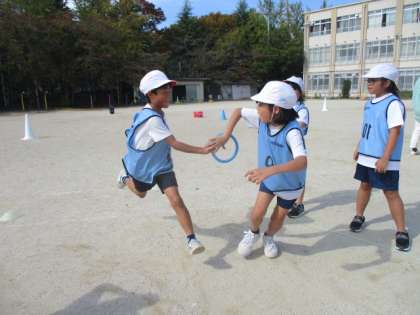 リレーあそびでは、バトンパスを上手にできるように意識して取り組んでいます。回数を重ねるごとに上手になっています。