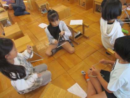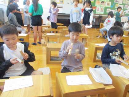 だがっきパーティーの学習では、気に入ったリズムを2つ選んで、選んだ楽器でリズム打ちをしました。