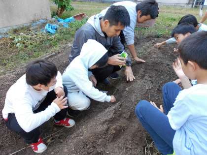 春に植えた野菜を収穫し終えたので,次は冬の野菜を植えました。