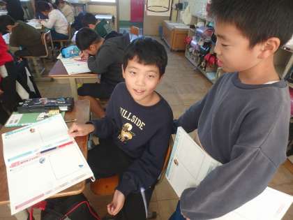 正直は誰のためのものなのかを考えました。お話を読みながら、登場人物の葛藤の気持ちを話し合いながら、正直について色々な意見を出し合っていました。