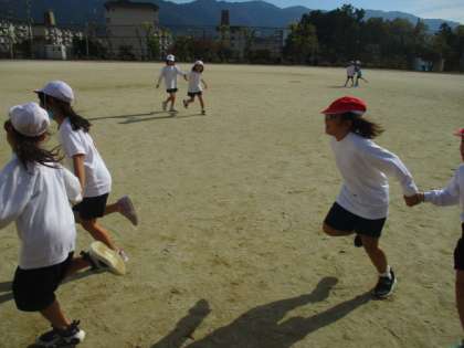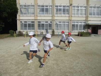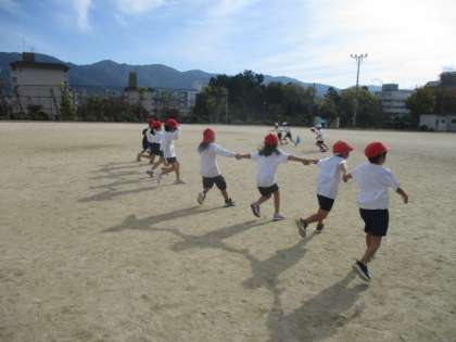 おにあそびをしました。どうしたらつかまえられるか、どうしたら逃げられるか、工夫できることを考えながらあそびました。