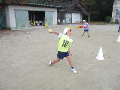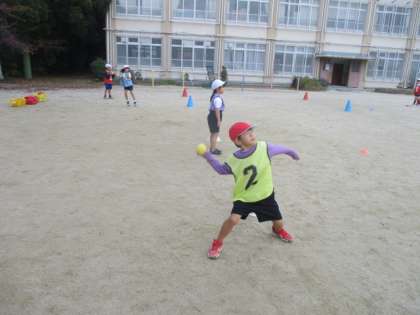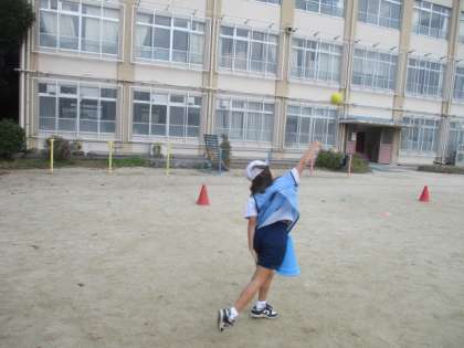 なげあそびでは、遠くになげることと、ねらってなげることをねらいとして学習しました。どうしたら遠くに、ねらって投げられるかをみんなで考えながら学習しました。