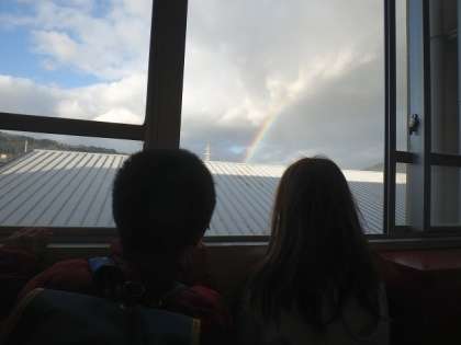外を見ると虹が!大喜びの子どもたちでした。何だか幸せな気分になりました。