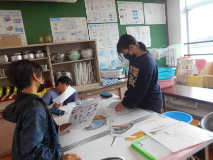 来週に行うみそ汁の調理実習にむけてのシュミレーションを行いました。どんな順番で調理をするのか、どうすれば効率よくスムーズに調理を進めることができるのかを考えながら取り組みました。