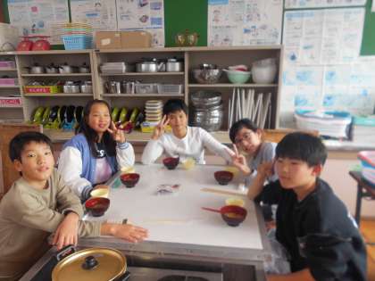 自分達で作った、煮干しでだしをとったみそ汁とだしを入れずに作ったみそ汁とで、飲み比べをしてみました。圧倒的に煮干しだし入りのみそ汁が美味しかったようで、だしの良さを感じることができました。「家でもやってみたい!」と言う子もいました。