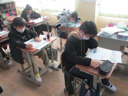 地層のでき方の実験や火山や地震について調べたことをもとにして、テストに取り組みました。