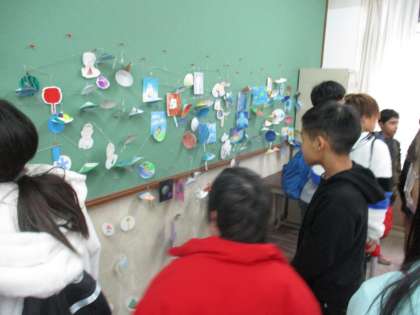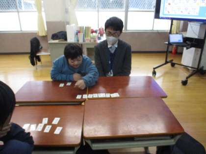 英語の授業で挨拶をしたり、アルファベット並べをしたりと中学2年生の先輩たちと楽しました。