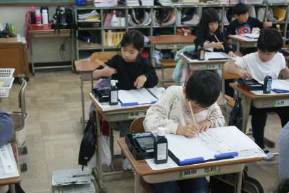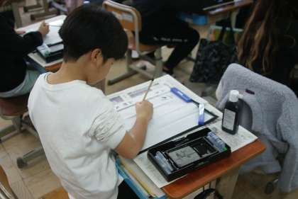 小筆を使って名前を書く練習をしました。初めは小筆の使い方に戸惑いながらも、練習するうちにどんどん上手になりました。