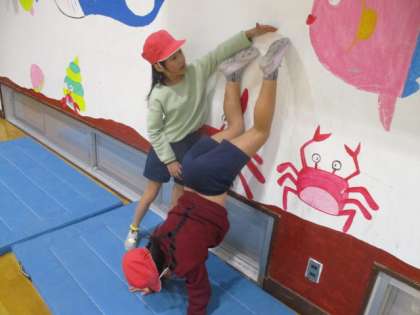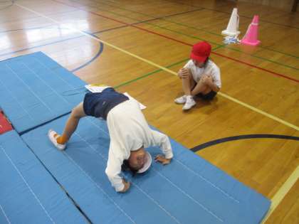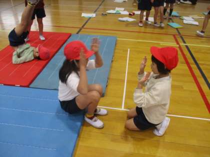 マットあそびでは、ペアでいろいろな遊びに挑戦しています。