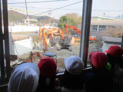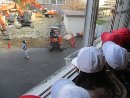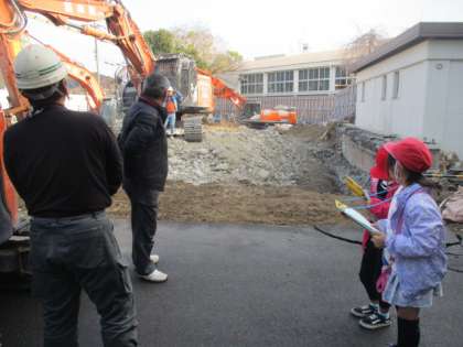 町たんけんでは、自分が調べたい場所に行ってインタビューをしました。小栗栖中学校の工事の様子を見させていただきました。