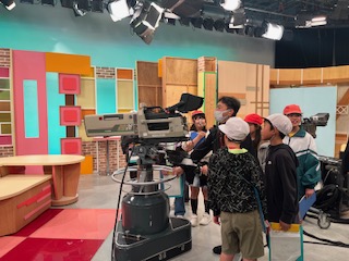 生放送用の大きなカメラでも撮ってもらいました。実際にモニターに映るのが面白いです!