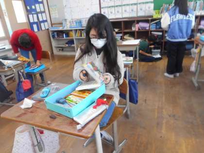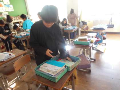 家庭科の学習で、整理整頓を行いました。まずは、整理で必要な物と必要でない物を分け、整頓で置く場所を決めていきました。よく使う物を手前に置くなど工夫をしながら進めていきました。