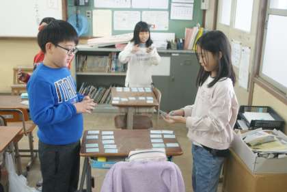 国語の学習で短歌について学習しました。そして、百人一首をしました。初めて行った子も多く、楽しみながら短歌に親しむことが出来ました。