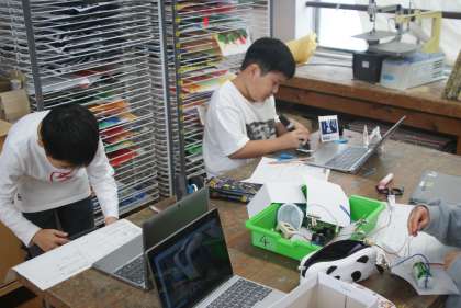 学習のまとめとして、電気回路を使ったおもちゃ作りをしています。学んだことを生かして、楽しみながらおもちゃ作りに取り組んでいます。