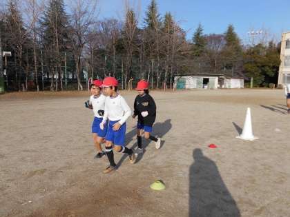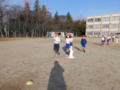 ゆっくりペース走の学習で5分間走をしました。どの子も歩くことなく、同じペースで走り続けることができました。