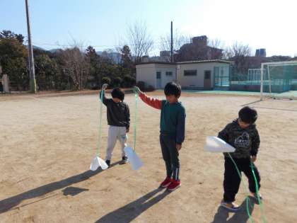 紙飛行機型のたこは,頑張って走らないとあがらないので