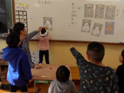 お正月遊びのふくわらいに挑戦しました。