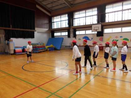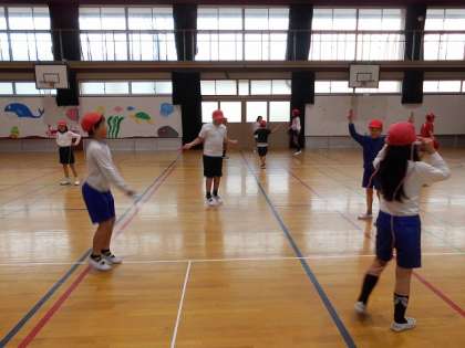 この日は、ねらい3で「大なわ」に取り組みました。入り方や跳び方のアドバイスをし合って楽しんで活動することができました。