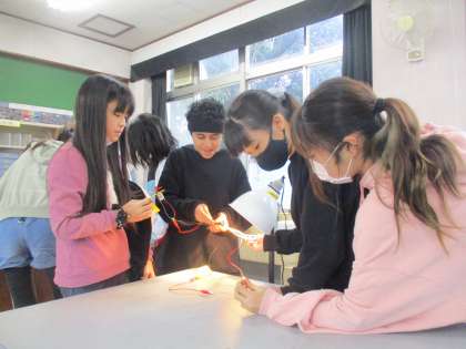 作った電気やためた電気がどのようなはたらきをするのかについて実験しました。