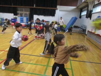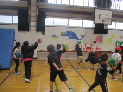休み時間に体育委員会の人たちに、投げ方や受け方、よけ方を教えてもらい、練習をしました。来週にドッジボール大会があります。