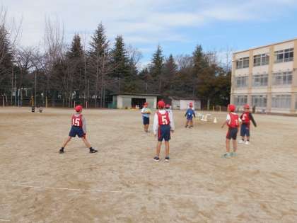 陣取りゲーム(タグラグビー)の学習がスタートしました。初めての時間でしたが、どんどん前に進める子が多く驚きました!