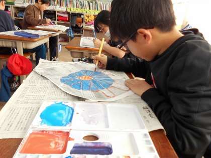 印刷したものに色づけをしました。自分のイメージに合わせて、丁寧に塗り進める子どもたちでした。