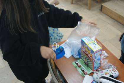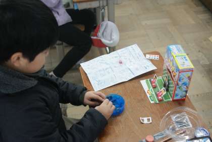 単元のまとめとして、磁石の引き付け合ったり退け合ったりする性質を使っておもちゃ作りをしています。