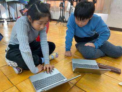 前の時間につくった旋律を組み合わせて演奏しました。次の時間に発表会を行います。