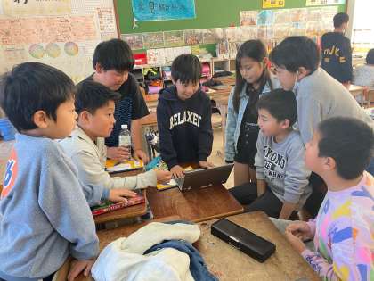 同じことを調べたグループでプレ発表会をしました。内容や発表の仕方についてアドバイスをし合うことができました。