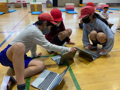 自分の意識したいポイントを意識しながら「腰を…」「手をつく位置を…」としっかりと話し合うことができていました。