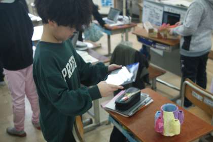 1年間で作った図工や国語の作品の中で、一番気に入っているものの紹介文を書く学習を始めました。まずは、お気に入りの作品を決めました。これから、組立などを学習していきます。