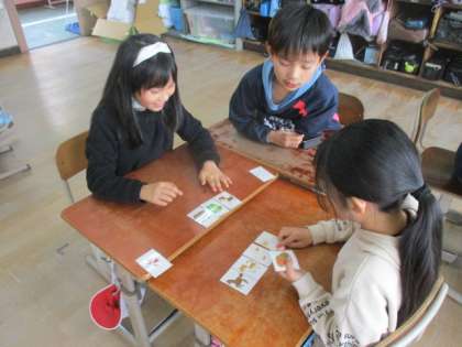 動物の言い方を聞いたり言ったりする学習をしました。やる気満々で取り組んでいます。