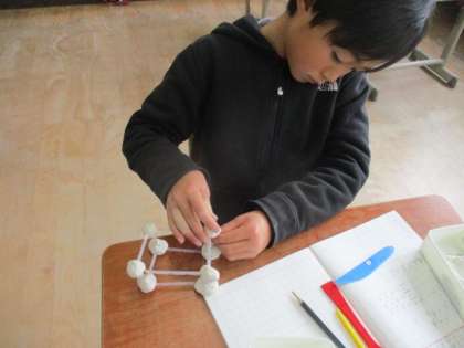ストローとねんど玉を使って、はこの形を作りました。どのような辺がいくついるかを考えてから作りました。