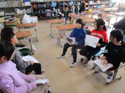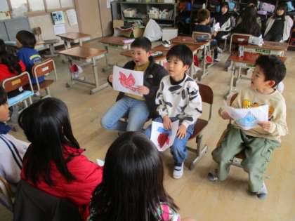 絵本をつくってグループで発表しました。相手に分かりやすいように伝えるにはどうしたらいいかを考えながら発表しました。
