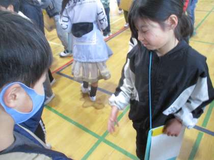 6年生を送る会では、6年生に今までの感謝の思いを伝えました。サインゲームでは、たくさんの6年生と関わることができて楽しんでいました。